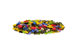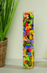 Unique plus-shaped pieces allow you to assemble flat images and stable spatial models.