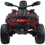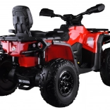 Discover the powerful and safe kids' quad CAN-AM OUTLANDER 4x4 with a 24V 7Ah battery and a total output of 800 W (4×200 W). It offers 2/4-wheel drive, soft EVA wheels, rear shock absorbers, a double padded eco-leather seat with belts, and striking LED lighting. The integrated LED multimedia panel with USB, FM radio, and MP3 keeps every ride fun. Ideal for children from 3 years, without remote control.