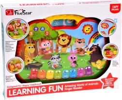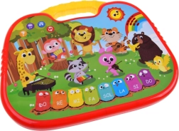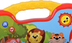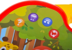 - Name learning: when pressing a picture, the toy says the animal/instrument name; after pressing the red button and the picture again, it plays their sounds.