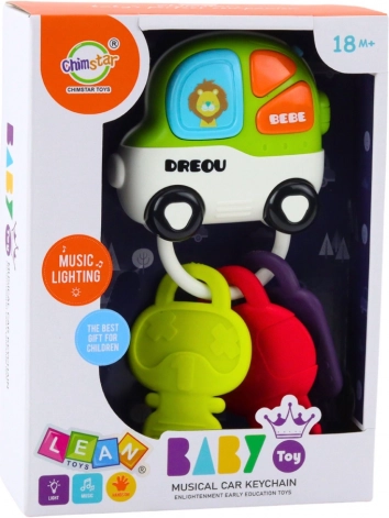Interactive keys for little ones combine light effects, cheerful sounds, a rattle function, and a soft teether. The colorful car-shaped remote with three large buttons supports fine motor skills, sensory development, and entertains kids at home and on the go.