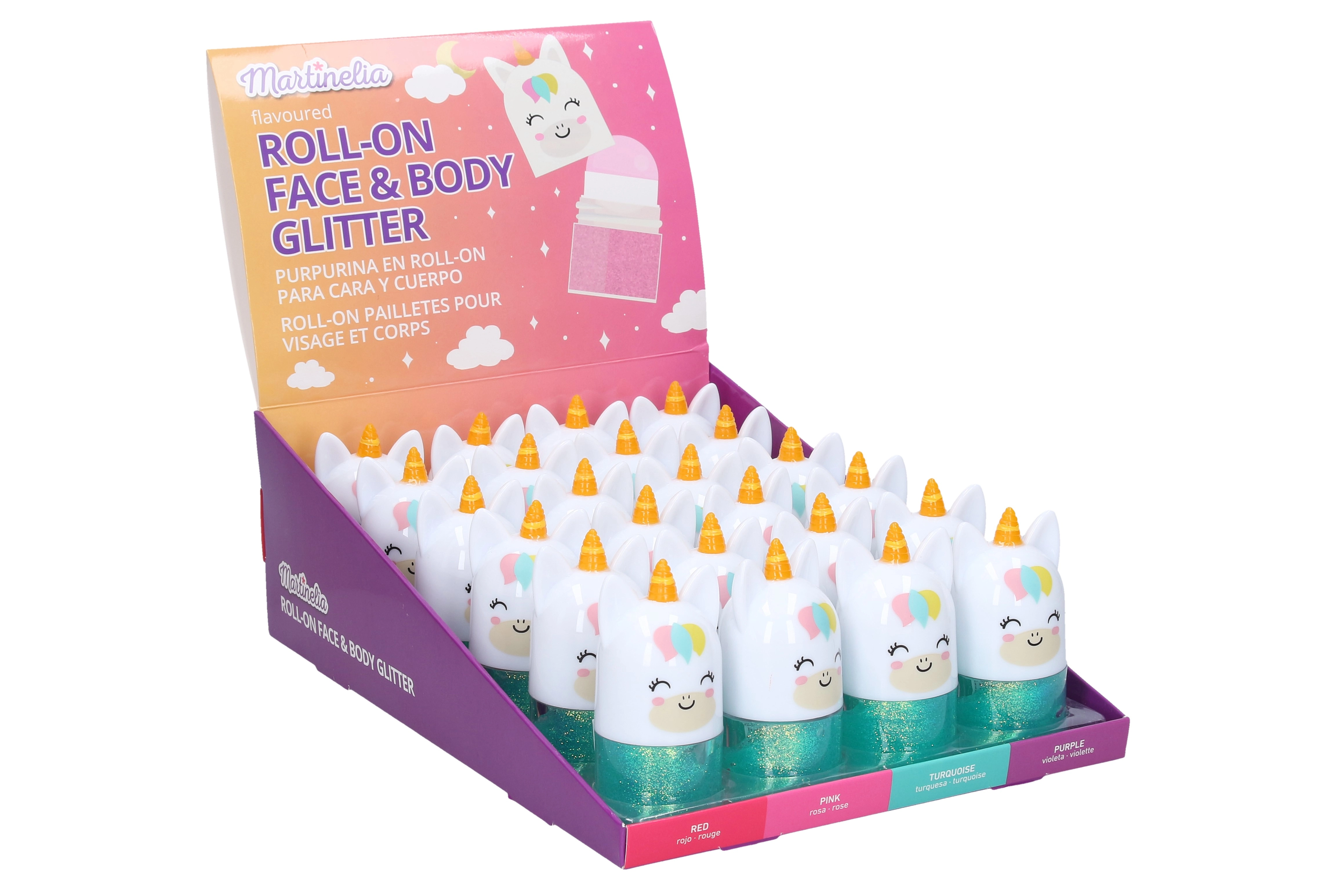 Discover a simple way to brighten your look. The Martinelia sparkling roll-on is ideal for parties, carnivals, kids’ celebrations, and creative makeup. Thanks to the practical applicator, you can apply it easily and precisely to the face, arms, or décolletage.