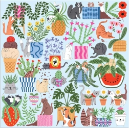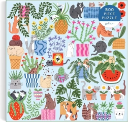 Enjoy a relaxing time with this original square puzzle featuring cats in flowerpots. The box includes 500 pieces and a reference poster to make assembly easier. Once completed, the puzzle measures approx. 51 × 51 cm — an ideal size for framing and display.