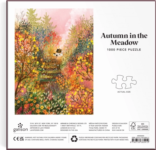 GALISON Autumn Meadow puzzle, 1000 pieces with poster. High-quality print, finished size 50.8 × 68.6 cm. Relaxation, challenge, and beautiful decor.