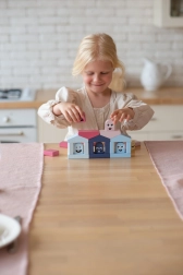 The Cubika Pastel Color Houses building set offers children plenty of opportunities for free play and guided learning. Each of the six houses has its own “resident” in a matching color – the task is to find the right combination and place the figure in the correct house. This naturally develops color discrimination, sensorimotor skills, and logical thinking. The blocks can also be used to build additional structures, fostering creativity and imagination.