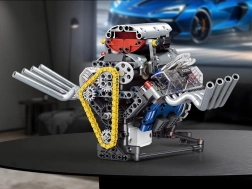 This technical kit guides you step by step through building a functional engine model powered by a rechargeable battery. Thanks to the well-thought-out design, you will see in practice how the piston, timing belt, and flywheel work, and how energy is transferred in mechanisms.
