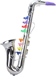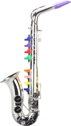 Discover the fun with a children’s saxophone in silver with colorful keys. This lightweight instrument requires no batteries, is safe, eco-friendly, and always ready to play. With 8 keys, it supports the development of hearing, rhythm, and fine motor skills.