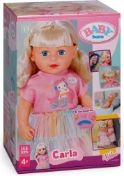 Discover the magic of play with the BABY born Carla doll, admired for its delicate details and realistic design. The soft body is pleasant to the touch, and the movable limbs make dressing and varied play scenarios easier. The 43 cm size is ideal for small hands and is compatible with many accessories.