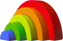 Colorful rainbow soft rubber puzzle is a safe sensorimotor toy for little ones that supports creativity, logical thinking, and coordination. Five flexible pieces in different sizes allow free stacking and endless combinations, while the soft material and rounded shapes ensure comfortable and safe play.
