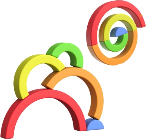 Discover a fun and educational toy that combines sensory stimulation with creativity. The rainbow pieces made of high-quality rubber are elastic, durable, and pleasant to the touch, making them perfect for small hands. The intense colors naturally encourage visual perception and focus.