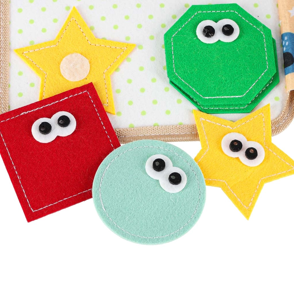 • Pleasant tactile material – soft, colorful felt invites exploration.