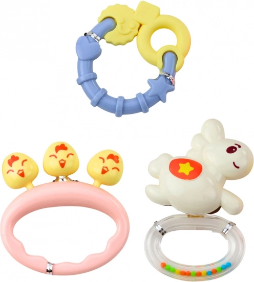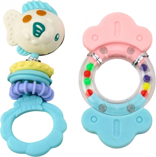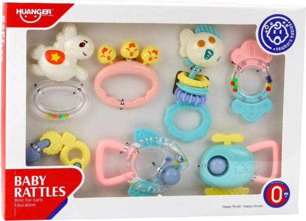Set of rattles and teethers for babies – pastel colors, 7 pcs