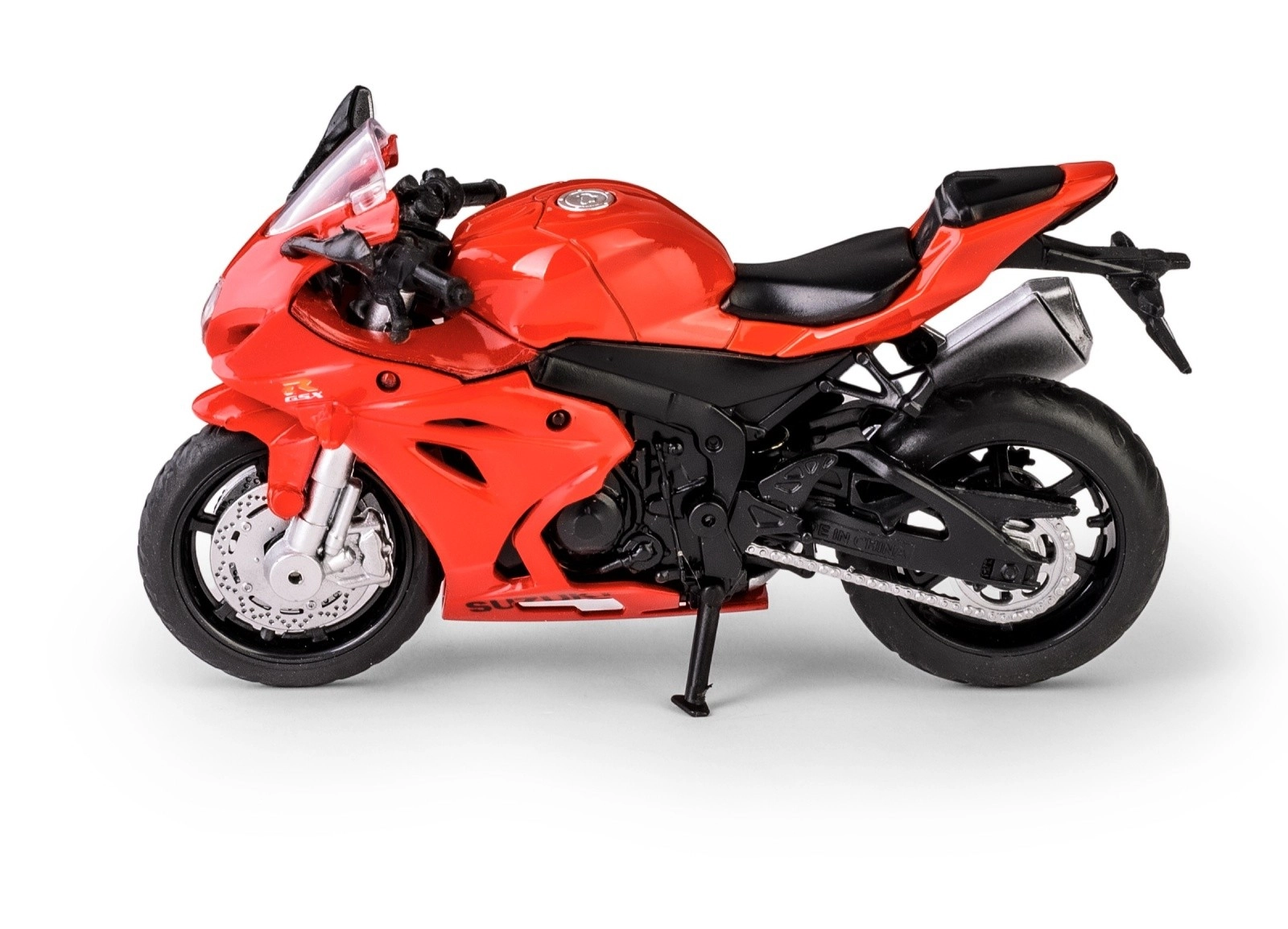 Detailed bodywork, brake discs, exhaust, and mirrors replicate the real SUZUKI GSX‑R1000. Ideal for collectors or as decor.