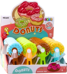 A fun handheld mini donut-shaped fan brings instant refreshment anytime, anywhere. Just press the lever and the soft blades create a pleasant breeze. Thanks to the manual drive it works without batteries, is safe for kids, and also serves as a hand workout. Compact dimensions and a playful design in several color variants make it an ideal summer accessory.