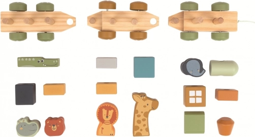 Thanks to the attached string, the train can also be used as a pull-along toy that motivates kids to move. Placing the shapes in the right spots helps with grip precision and solving simple tasks, making it ideal for children from 18 months.