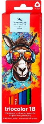 Discover quality KOH-I-NOOR Triocolor triangular colored pencils in a set of 18 colors, trusted by children and schools alike. They offer a durable break-resistant core, an ergonomic grip for comfortable drawing, and a rich color range for creative work.