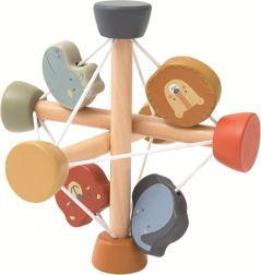 The Safari Active Ball combines quality wood with elastic bands and a friendly animal design (lion, elephant, hippo, and bear). Through playful activities, children practice grip, coordination, and patience. Pastel colors and smooth finishes attract attention and support focus.