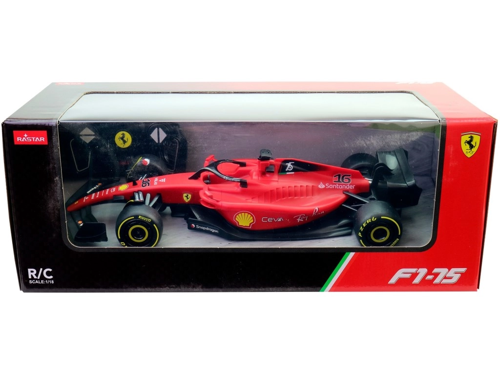 Enjoy adrenaline-fueled racing with the RC FERRARI F1-75 Formula car in 1:18 scale. This finely detailed car offers an authentic F1 look, easy control, and a great price-to-fun ratio for kids aged 6 and up. Made from high-quality plastic, ready to drive after inserting 5× AA batteries.