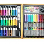 A complete set for young and adult creators in an elegant wooden case. Inside you’ll find 150 creative tools for drawing, painting, cutting, and gluing – ideal for home, school, and travel.