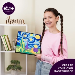 Creative kit for kids and adults – create a magical picture of The Little Prince: Night Sky using modeling compound and number guidance. Simple, fun, and relaxing crafting on a 29 × 29 cm canvas with all accessories included in the box.