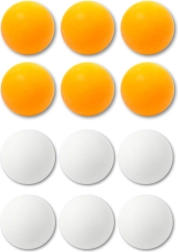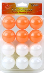 A set of quality ping pong balls in white and orange for recreational and training play. Includes 12 pieces, made of durable plastic with excellent bounce and lightweight design for smooth, enjoyable play at home, in clubs, and at school.