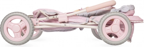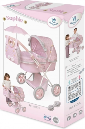 Discover the romantic doll pram from the SOPHIE collection with delicate lace and bows. The light pink color combined with gray and white details looks enchanting and highlights the Spanish design and precise workmanship. The folding mechanism ensures convenient storage and transport, so the pram is ready for play both at home and outdoors.