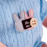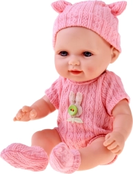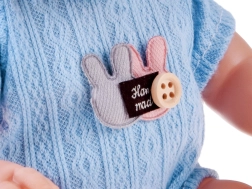 The doll has movable limbs and head, so it can be seated or laid down for sleep. The outfit includes a soft knitted onesie with a hook-and-loop closure that is easy to take off and put on – together with the cap and booties, it supports your child’s fine motor skills and independence. The clothes are available in two color variants: pink and light blue.