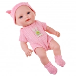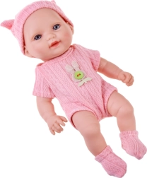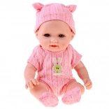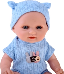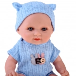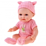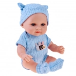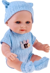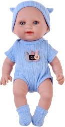 A lightweight baby doll with a height of 26 cm, ideal as a first doll for the little ones. It has movable arms, legs, and head, so it can be seated or laid down. The realistic little face with long eyelashes and detailed features will delight every child. Includes soft, removable onesie with hook-and-loop fastener, cap and booties in two colors – pink or blue.