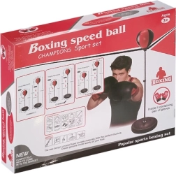 Punching ball (inflatable), gloves, adjustable pole, base, pump with needle, wrench, manual, color box + brown shipping carton