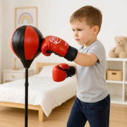 A fun and safe boxing set for kids that promotes active movement, improves reflexes and coordination, and helps release energy. The freestanding spring-mounted punching ball quickly returns after a hit, and the height is easily adjustable between 70–104 cm. A stable base for water or sand, universal-size gloves, and a pump with needle are included.