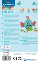 A cute bird-shaped piggy bank from Clementonifinancial literacy through play. It features a practical coin slot, easy emptying, and is made from high-quality, safe materials. Perfect as an original gift and a decoration for a child’s room.