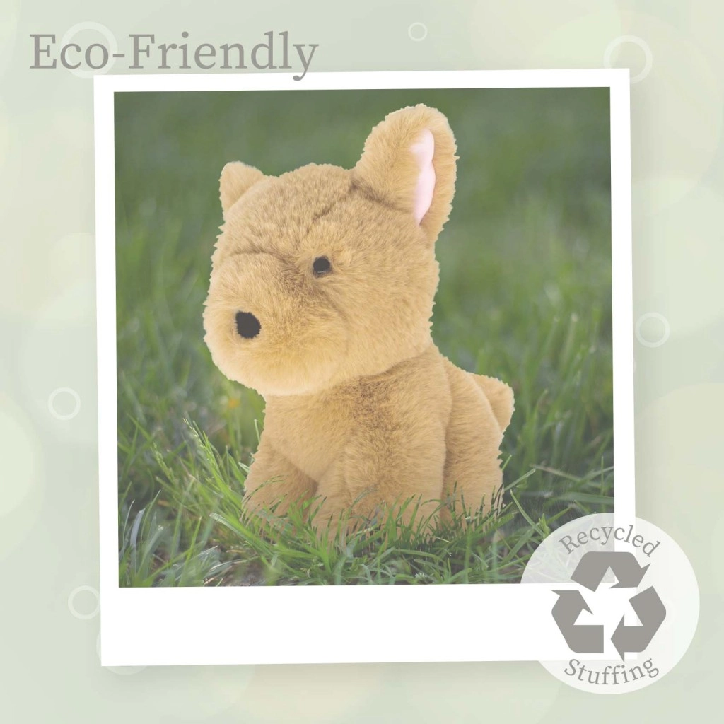 This brown plush puppy will charm kids with its sweet expression and exceptionally soft surface that invites cuddles. Thanks to its compact size, it’s perfect for travel, for the crib, and for playtime throughout the day.