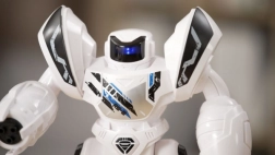 The robot shoots darts and enhances the action with a dynamic LED face and sound effects for even more fun.