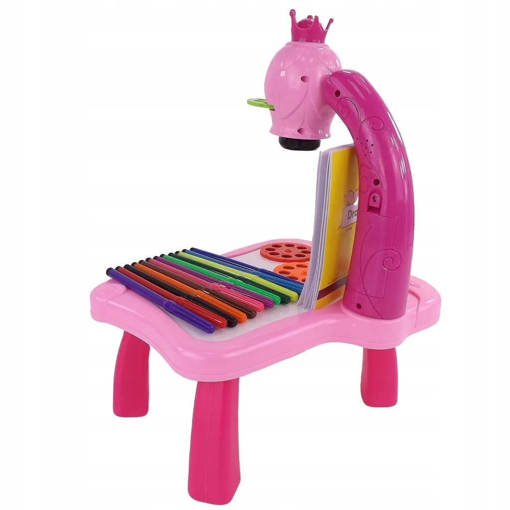 Discover a fun way to teach kids how to draw. The kids' projector with a crown projects bright images directly onto the drawing surface, so they can easily trace and color them. The vibrant pink color naturally invites play, while focus adjustment ensures a clean, readable image.