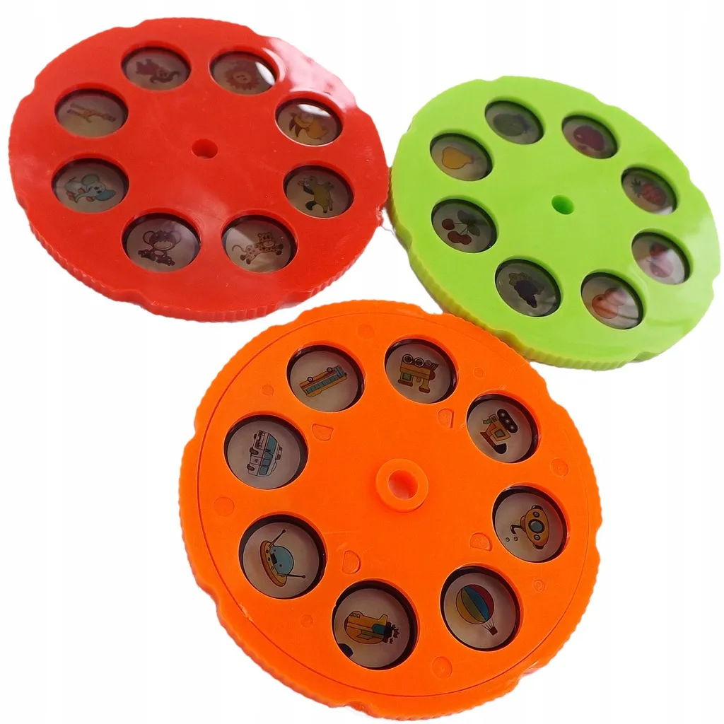 Three interchangeable discs (8 images on each) project themes of animals, vehicles, and fruit/vegetables. Kids trace the outlines and quickly gain confidence and control.