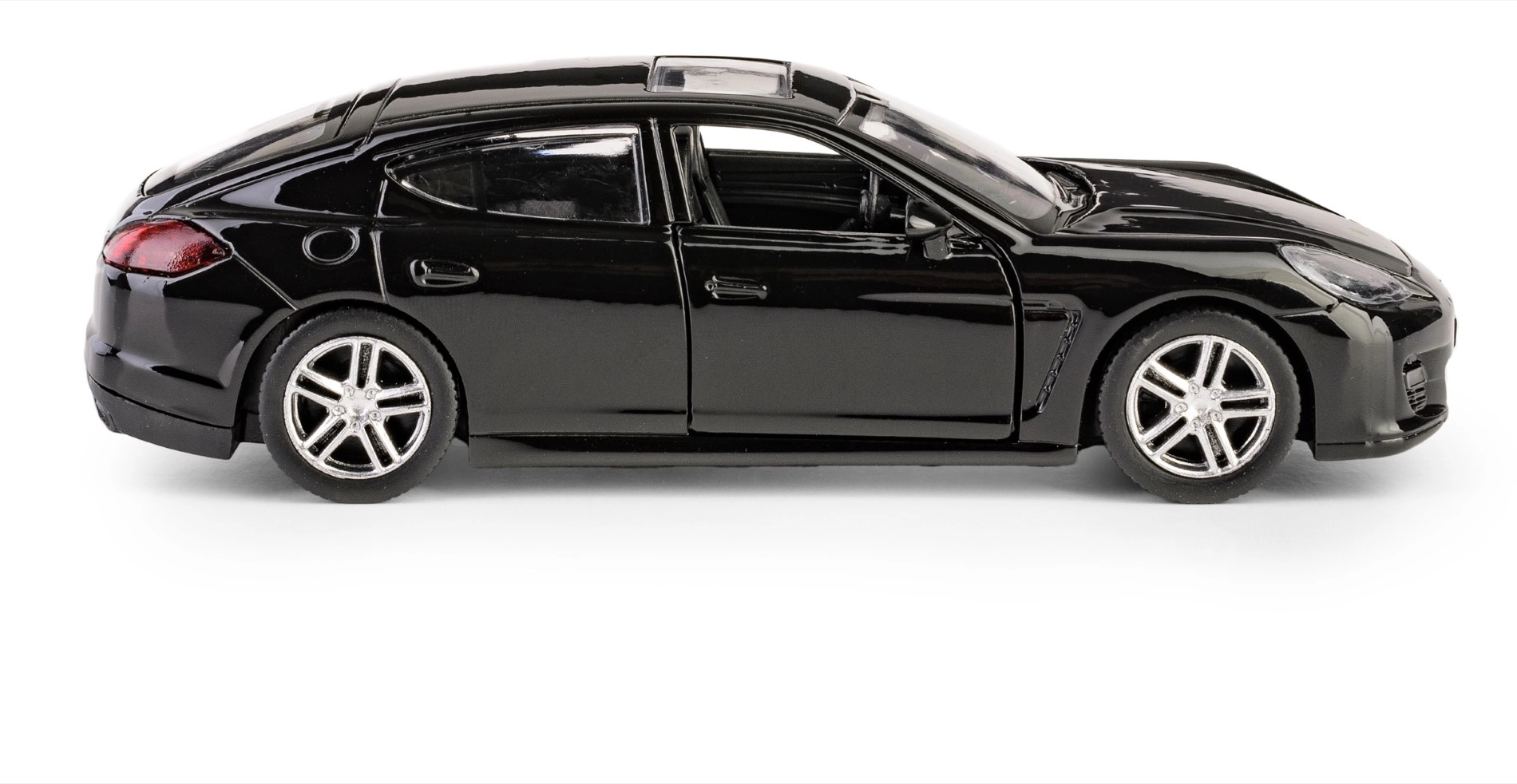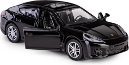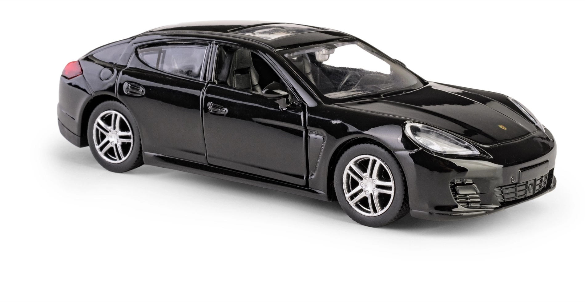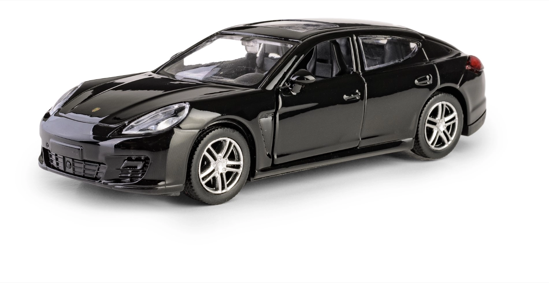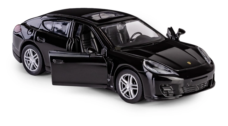 A finely crafted die-cast model of the PORSCHE Panamera Turbo in 1:32 scale that delights collectors and kids alike. It features opening front doors, a realistic interior, and a pull-back drive for quick forward motion. Thanks to the official license, it impresses with a high level of detail and quality workmanship made of metal with plastic parts.