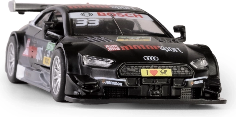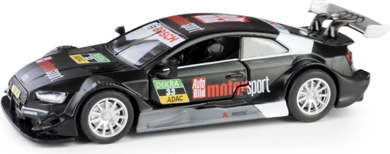 A precisely crafted model of the AUDI RS 5 DTM in 1:43 scale will delight collectors and kids alike. The metal body with plastic details faithfully captures the sporty design, and thanks to the opening doors and pull-back mechanism, it offers great interactivity. This licensed product complies with European safety standards and is suitable for children aged 3 and up.