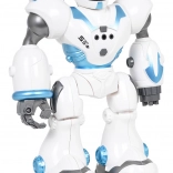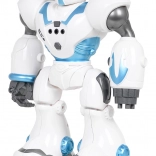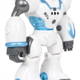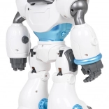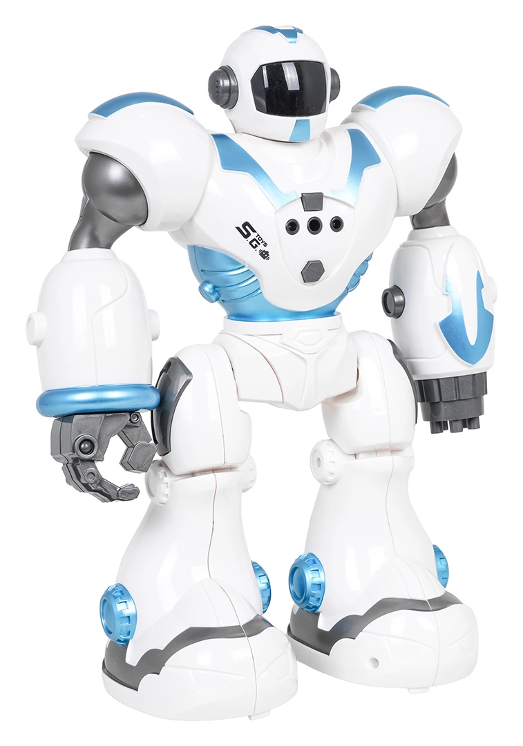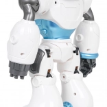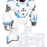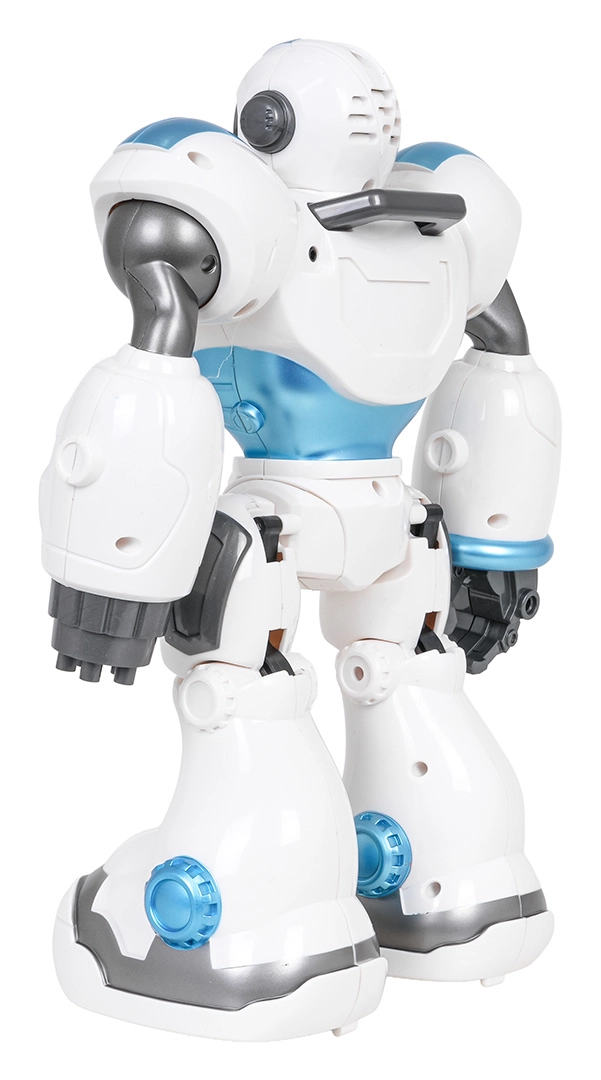 A fun and smart companion for kids aged 3+: the multifunctional U-ICTORY robot in blue. It can walk, turn, move its arms, dance, play melodies, tell stories, and even ask and answer questions. Controlled via a 2.4 GHz remote, the robot is programmable and has backlit eyes. A rechargeable 3.7 V battery is included.