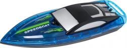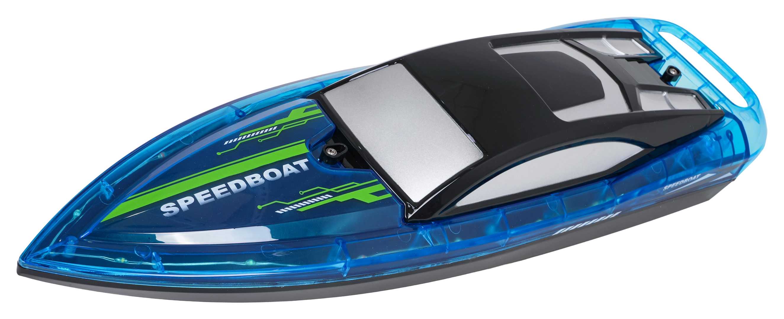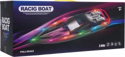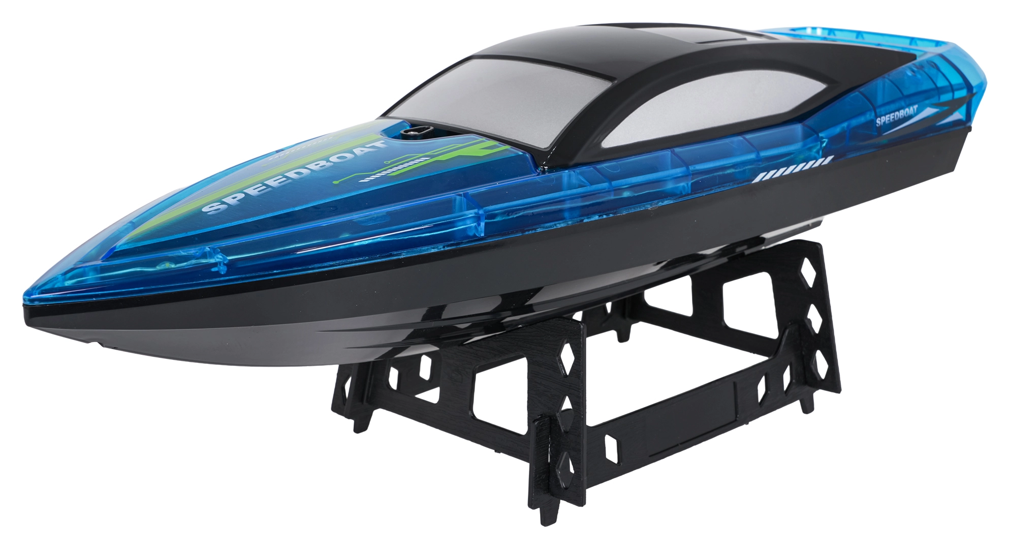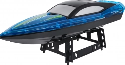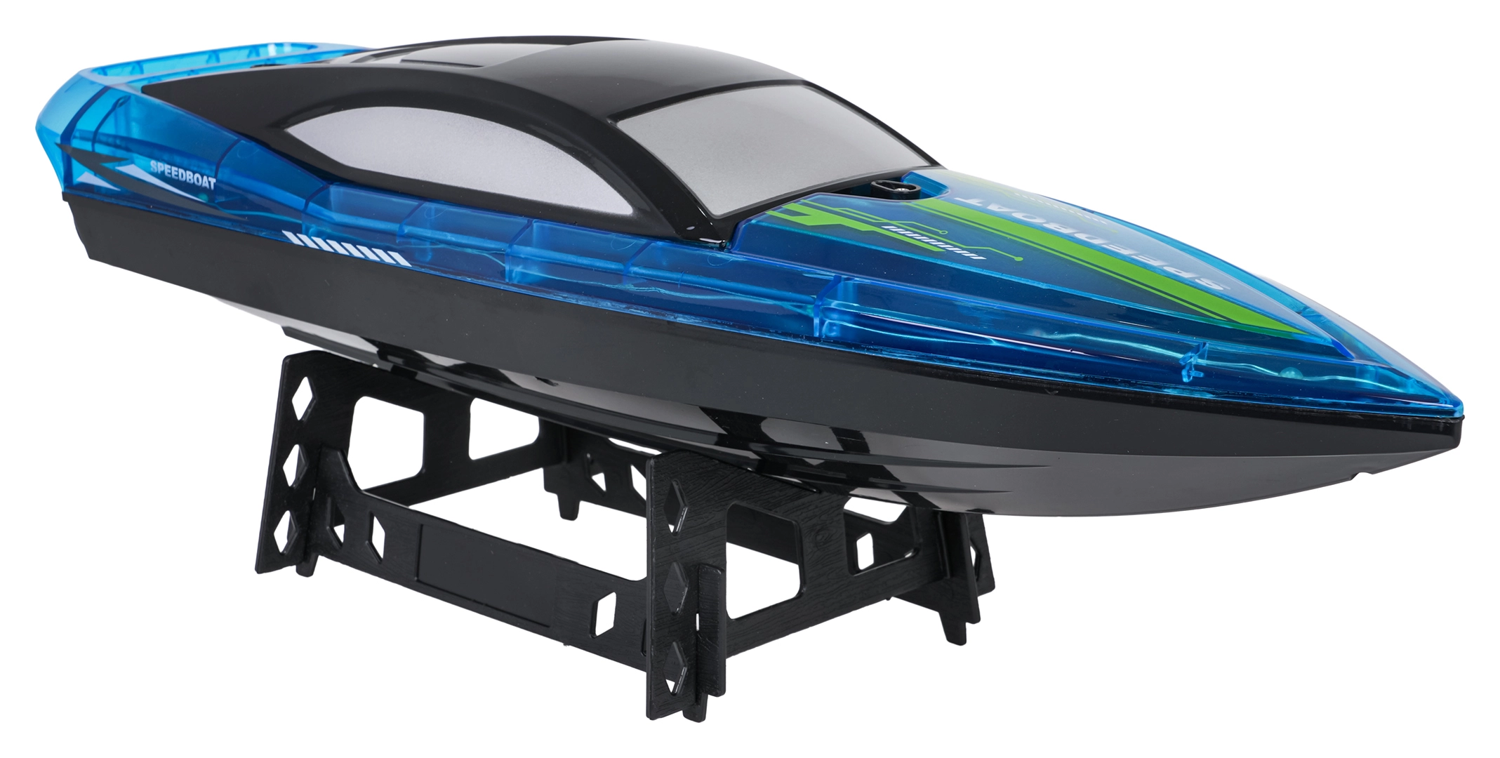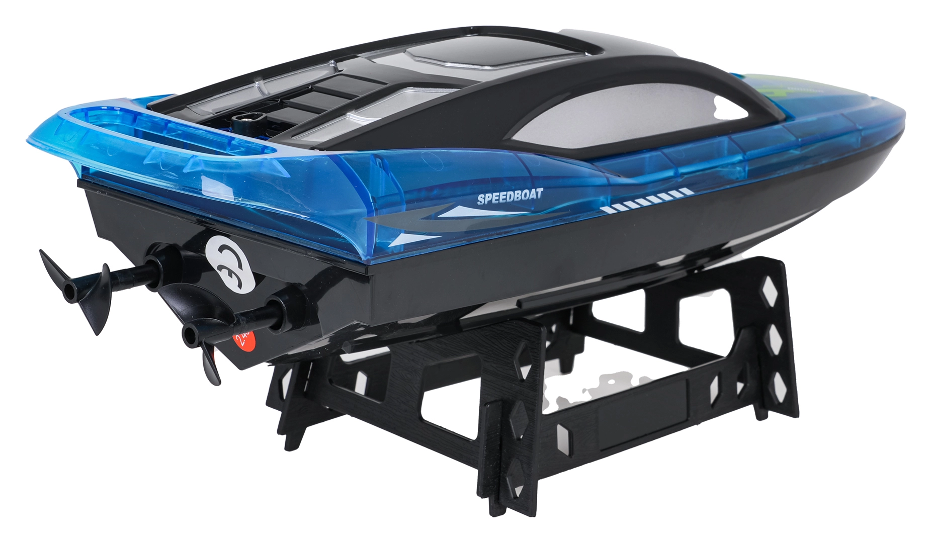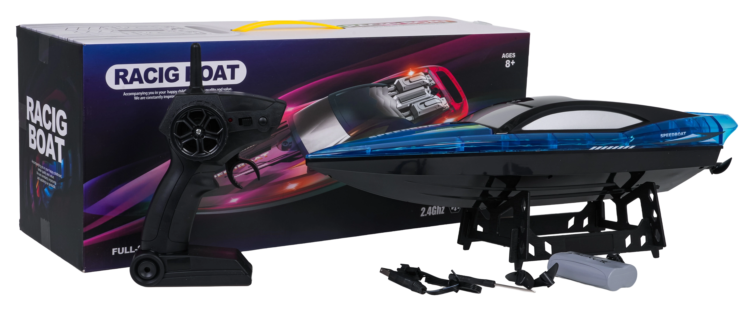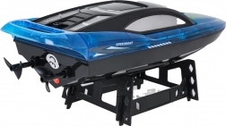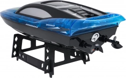 This blue RC motor boat is designed for fast, precise rides on the water. Quality materials and an aerodynamic hull ensure excellent handling, while LED lights increase visibility and add an attractive look for evening runs. The 2.4 GHz controller offers reliable range without interference, so you can race multiple boats at once.