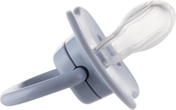 The pacifier is sturdy and resistant to deformation, contains no BPA, and is easy to keep clean. A practical handle makes it easy to hand over and attach a chain or ribbon to prevent the pacifier from falling and getting lost. The package contains 1 piece in blue.