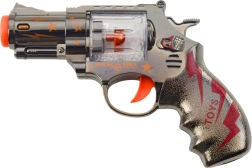 A fun kids' revolver for little adventurers with a realistic look and action effects. When the trigger is pressed, light and sound effects activate and beads move in the magazine, faithfully imitating the operation of a real firearm. The lightweight, safe construction made of quality plastic ensures a comfortable grip and safe play both indoors and outdoors.