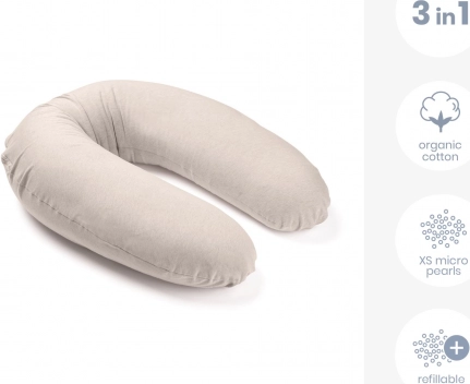 The large multifunctional DOOMOO Buddy pillow is ideal for expectant moms and new parents. It helps relieve the back, belly, and hips during sleep, supports correct positioning while breastfeeding, and provides a cozy, stable environment for your baby. The soft cover and quiet micro beads adapt to the body and ensure pleasant support without unwanted rustling.