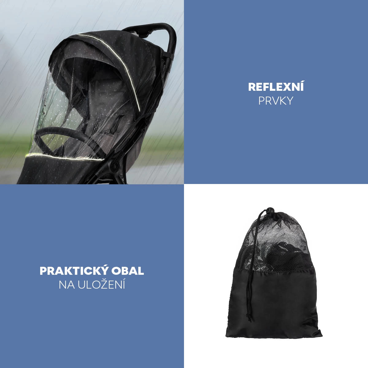 Protect your stroller and child from the elements with the ZOPA Exclusive rain cover. This universal rain cover fits both seat units and carrycots, features a zippered window for quick access, ventilation holes for better airflow, and reflective elements for enhanced safety. It is easy to pack into the included bag and ready for rain, wind, and pesky insects.
