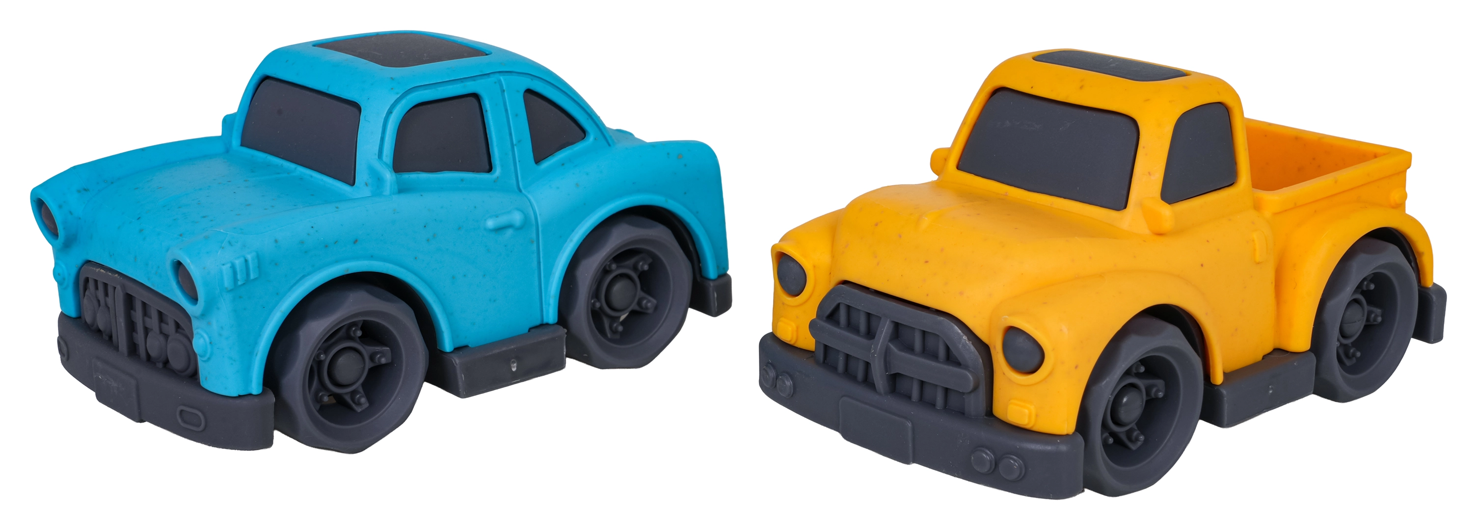 This eco toy combines fun with learning: children develop fine motor skills and shape recognition with the sorter on the sides of the carrier while enjoying imaginative rides with the two toy cars. Durable bioplastic, rounded shapes, and vibrant colors ensure safe and appealing play.
