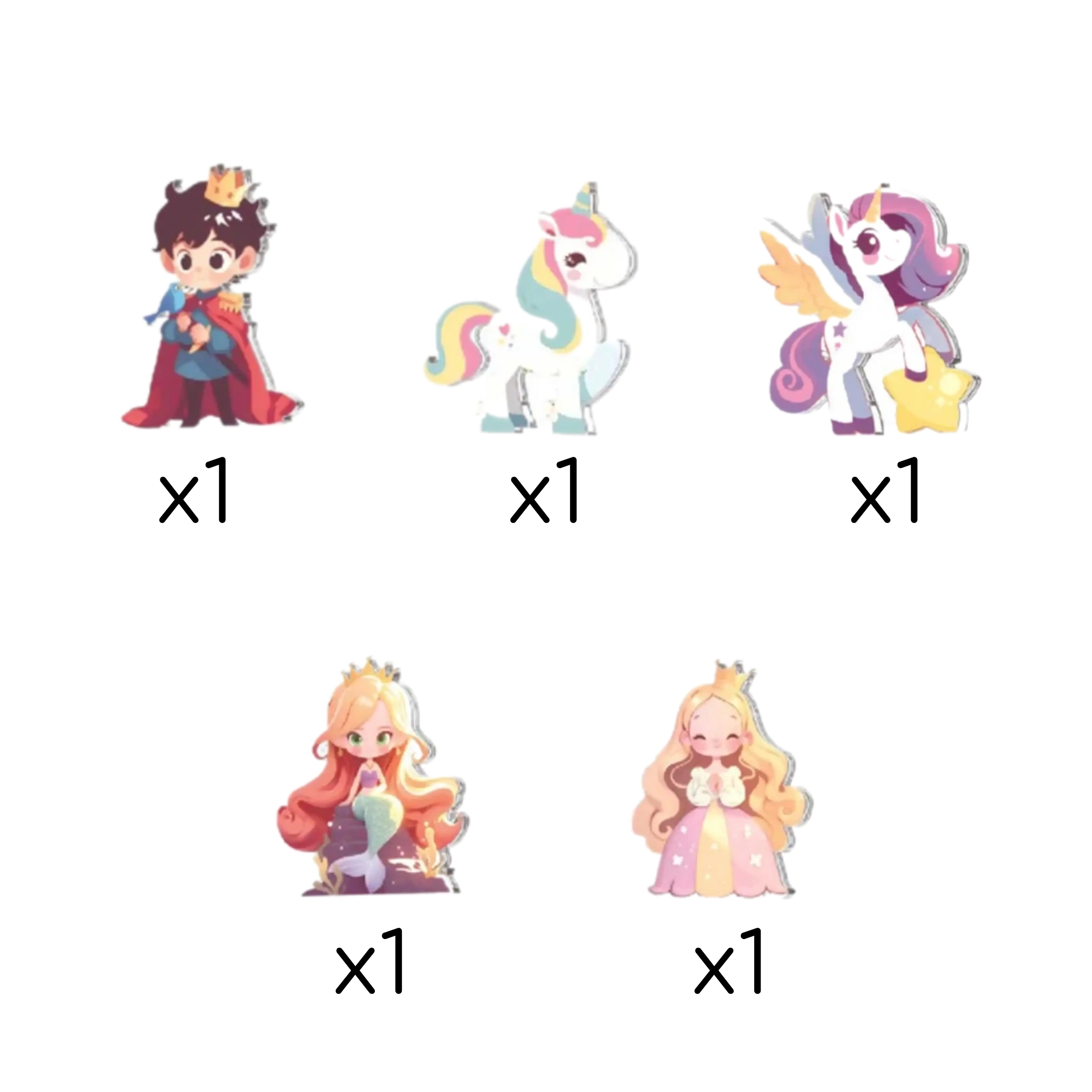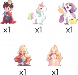 Stairs, fences, shutters (8 pcs), figures of a princess, a prince, and unicorns