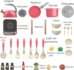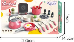 The comprehensive WOOPIE kitchen set will delight every little chef. It offers up to 30 pieces, including an induction cooktop with light effects, pots, a pan with a fried egg, and rich accessories. Children will enjoy realistic role play, develop creativity, imagination, and fine motor skills, and learn social skills while cooking together.
