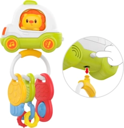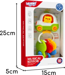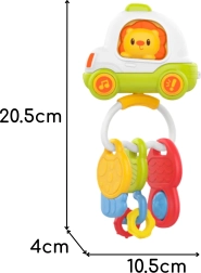 - interactive lion car toy, 3 keys of different shapes, soft teether, hanging loop, gift packaging