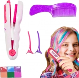 - Color-applying mini straightener, set of colorful chalks, comb, 2 hair clips