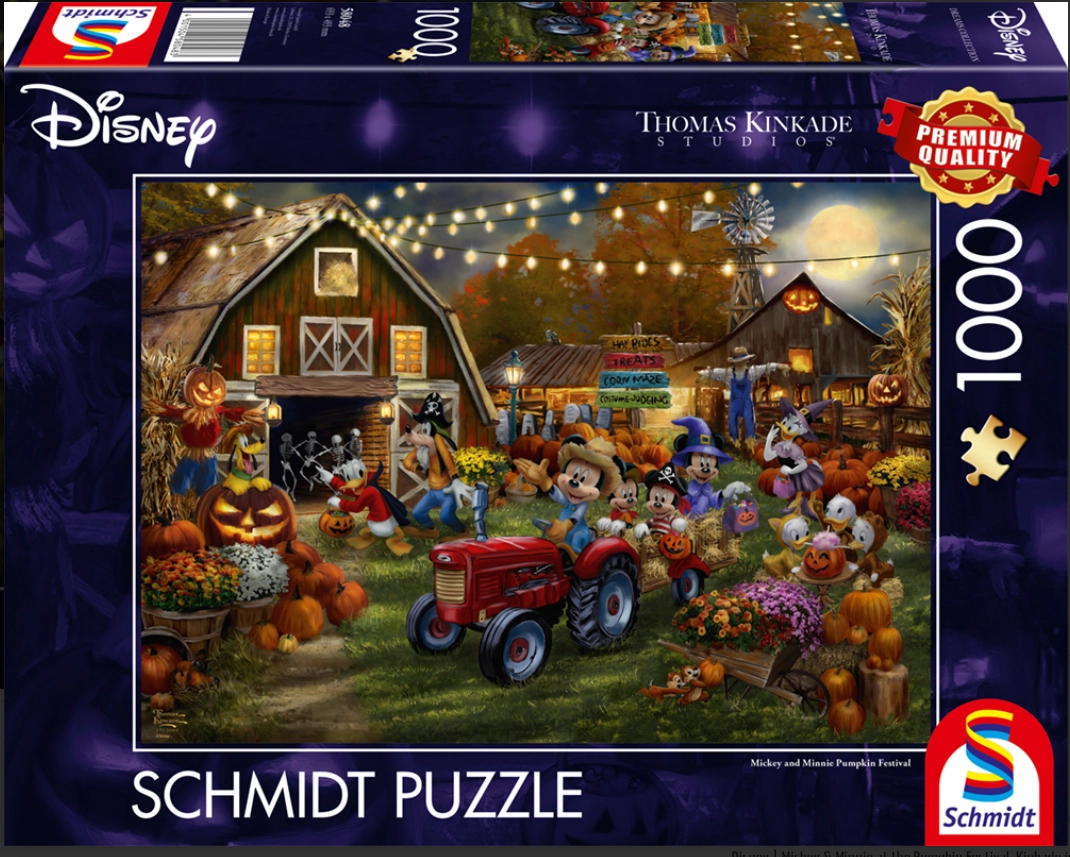 Discover the joy of puzzling with the premium SCHMIDT puzzle with the autumn theme Mickey and Minnie: Pumpkin Festival. Thanks to the precise cut and sturdy pieces, every part fits perfectly in place, and the finished image will delight both children and adults. Ideal for moments of relaxation, developing patience and concentration.