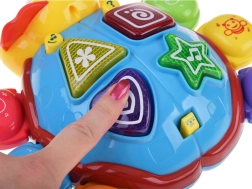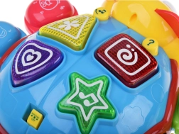 Colorful interactive bug motivates kids to crawl and climb, plays cheerful melodies, flashes lights, and changes direction thanks to a smart obstacle sensor. By pressing the large buttons, children learn colors, animals, and the concept of cause and effect. An ideal toy for active fun and fine motor development.