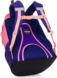 Lightweight, ergonomic school backpack for children from 3rd grade with a modern ombre design. Features anatomically shaped back panel, padded straps, and a chest strap for comfortable wear. Two spacious compartments, a front pocket for small items, and side bottle pockets ensure perfect organization. Reflective elements increase safety, and the reinforced bottom keeps the backpack stable. Volume 28 l, weight 960 g, load capacity 8 kg.